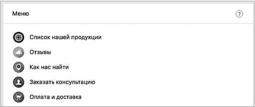 Помимо персонализации, существуют особые виджеты для разных видов бизнеса. Можно подключить вот такое меню (рис. 8).