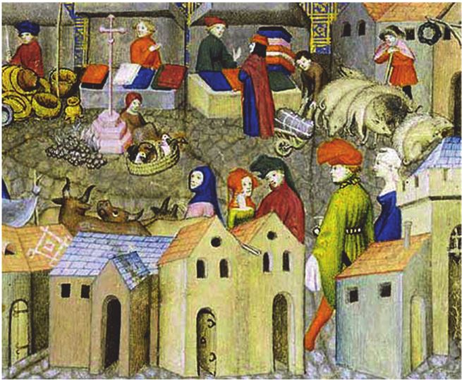 Рис. 3.10. Ярмарка в Шампани. Миниатюра XIII в.