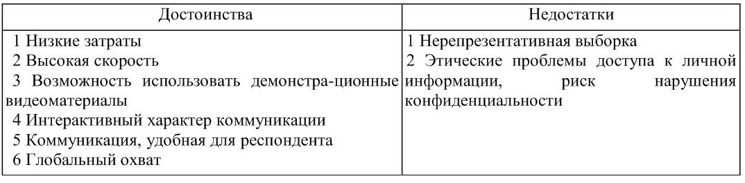 Таблица 13 – Преимущества и недостатки проведения исследований посредством Интернета