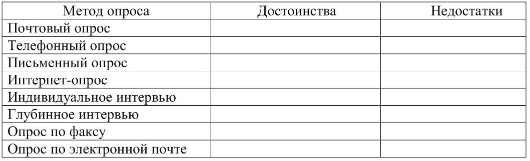 Заполните таблицу 18, указав преимущества и недостатки сбора данных посредством использования различных методов опроса.