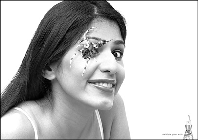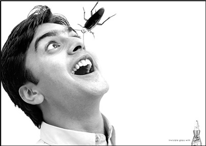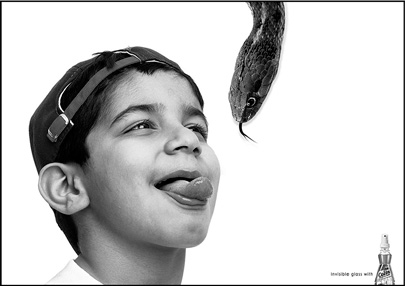 Эту же нашу психологическую особенность можно с успехом использовать и в рекламе. Средство для мытья стекол настолько эффективно, что можно смело рассматривать ядовитых змей буквально на расстоянии вытянутого языка (рис. 44).