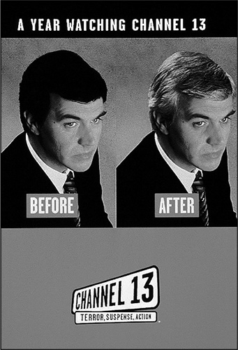 Через год непрерывного просмотра триллеров, ужастиков и страшилок внешний вид зрителей серьезно меняется (рис. 47). В рекламе показываются не сами ужасы, а тот результат, к которому они приведут. Все промежуточные звенья отдаются на откуп нашему воображению. Что в итоге, возможно, воздействует на кинолюбителей еще сильнее.