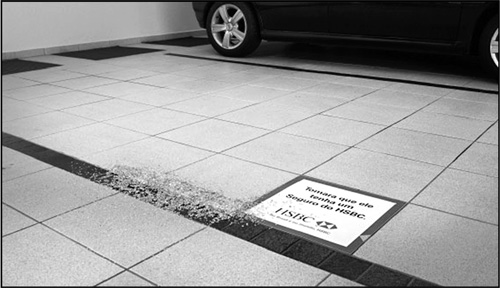 На втором этапе рекламной кампании на городских парковках рассыпали битое стекло и рядом наклеивали стикер: «Надеемся, что автомобиль был застрахован в такой-то компании» (рис. 26). Совсем просто, недорого и действенно.