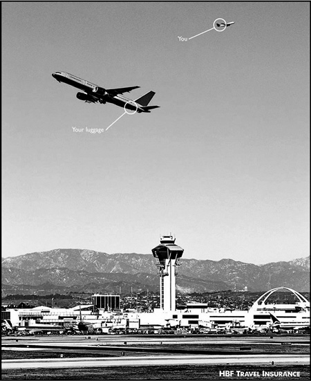 Взгляните, вы летите в одну сторону, а самолет с вашим багажом направляется совсем в другую (рис. 28). Ужасная ситуация. На помощь приходит компания по страхованию непредвиденных случаев в путешествиях.
