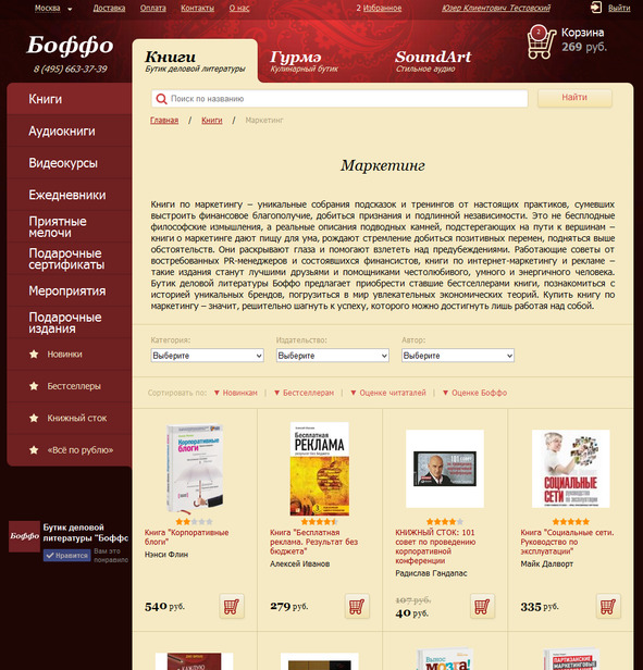 Когда мы говорим об интернет-магазине, то тут всё дело в сортировке. Для бутика деловой литературы «Боффо» было логично показывать сверху бестселлеры за небольшой временной период. Книги меняются местами друг с другом вполне естественным образом – какие-то постепенно теряют актуальность, и их прекращают активно покупать, новые при первом появлении продаются в большом количестве, бестселлеры достаточно долго находятся на верхних строчках. В результате сверху всегда остаются самые актуальные товары.