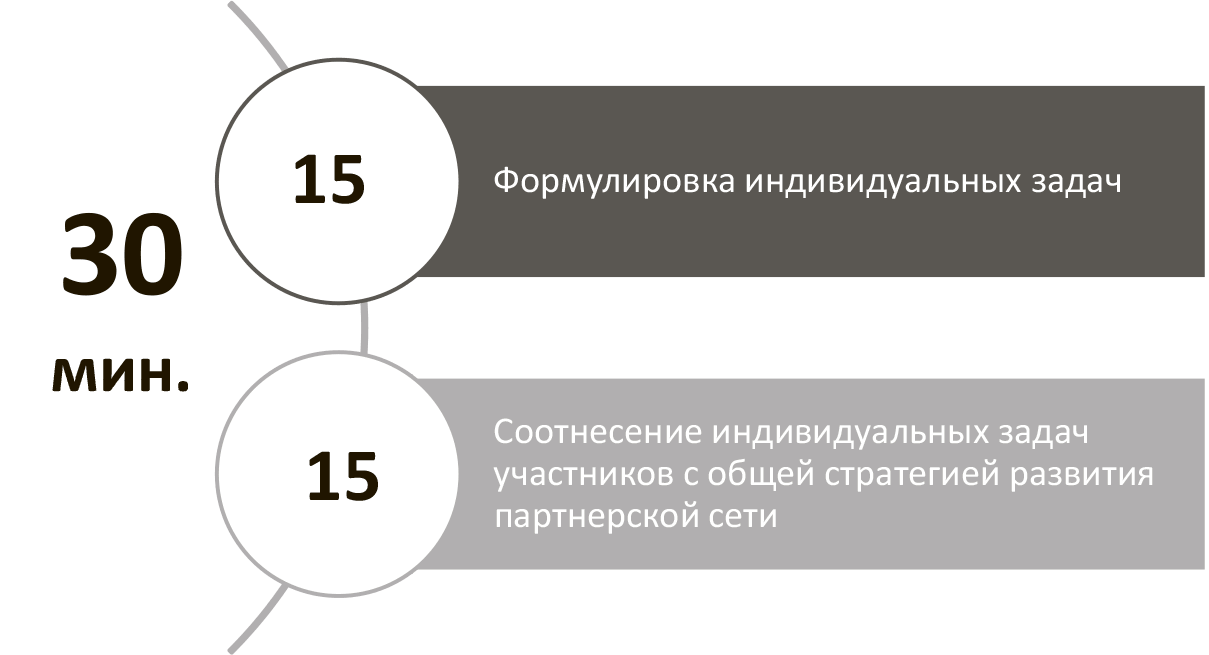 Цель этапа: формирование индивидуальной программы действий каждого из участников сессии на год в контексте развития партнерской сети компании.