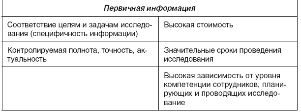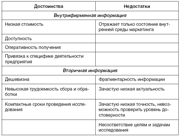 Ниже рассмотрим основные достоинства и недостатки каждой группы источников информации (табл. 2.4).