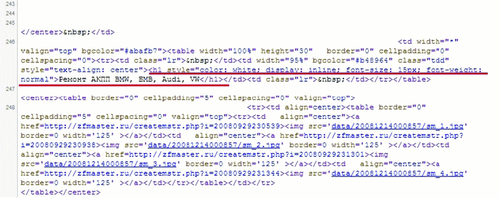 Заголовок подчеркнут красной линией. Он начинается с <h1> и заканчивается </h1>.