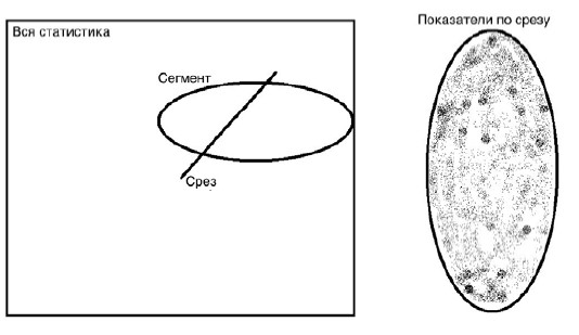 Второй термин, который нам будет нужен не реже, это «срез». Это понятие наверняка многим знакомо из геометрии. Если разрезать предмет, то можно увидеть его строение, содержание, мелкие детали, которые сами по себе не видны. Точно так же и здесь. По сути срез – это то, что мы собираемся измерить. «Разрезав» статистику определённым образом, можно увидеть много интересного. Например, можно посмотреть доли посещений по различным браузерам и узнать, с каких из них большая доля посетителей покидает сайт в первые 15 секунд. Далее проверим отображение сайта в этих браузерах, и если увидим неполадки, сможем их исправить. Разные виды срезов можно объединять в группы, например, смотреть не только браузеры, но и разрешение экрана.