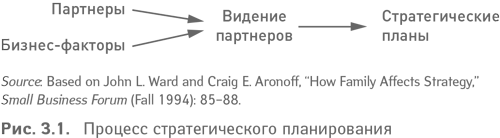 Стратегический план партнеров. Базовый процесс стратегического планирования способствует объединению партнеров и всего, что они привносят с собой, а также воздействующих на них важнейших бизнес-факторов. Переменные таковы: число партнеров, их личные ресурсы, стили руководства, межличностные взаимоотношения, профессиональные познания, жизненный опыт, устремления, цели и личные ценности. Все перечисленные элементы формируют вектор развития компании. К бизнес-факторам можно причислить материальные ресурсы, сферу деятельности компании, кредитоспособность и разнообразие операций. Уникальный подбор партнеров в сочетании со специфическим бизнес-контекстом формирует видение будущего компании, на котором строятся все стратегические планы[13].