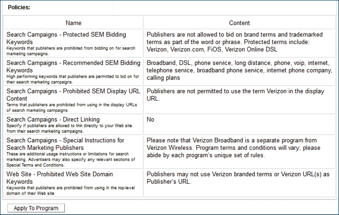 По аналогии с пользовательским соглашением партнерской сети, эти правила регулируют отношения, только на этот раз между партнерами и рекламодателями (продавцами). Не следует путать их друг с другом. Большинство рекламодателей налагает дополнительные условия, которые вы обязаны соблюдать. Внимательно изучите их, прежде чем начинать продвижение любого рекламодателя.