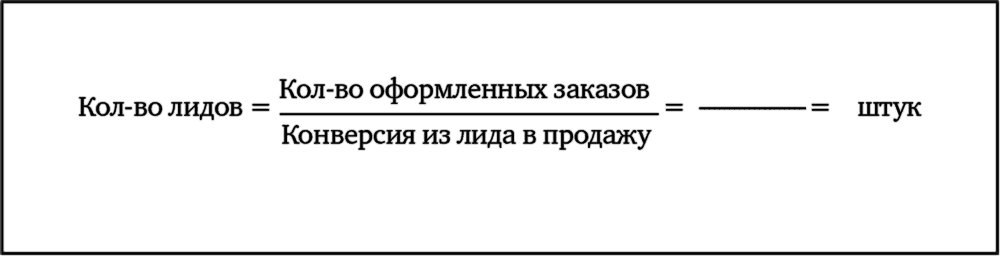 Кол-во лидов = (Кол-во оформленных заказов) ? (Конверсия из лида в продажу)