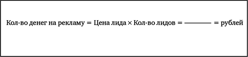 Кол-во денег на рекламу = (Цена лида) ? (Кол-во лидов)