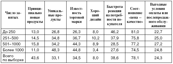 Исследования, проведенные в 2006 г. ГУ – ВШЭ среди 1000 предприятий, показали, что в качестве конкурентных преимуществ (или, иначе говоря, целей деятельности) сами предприятия выделили следующие позиции (табл. 1).