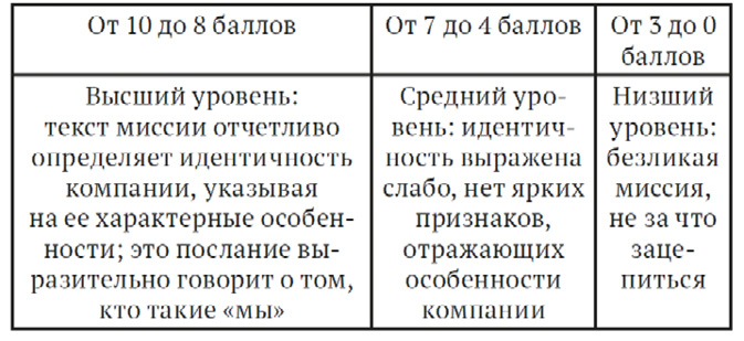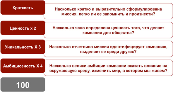 При оценке краткости и выразительности текста миссии можно ориентироваться на следующую шкалу: