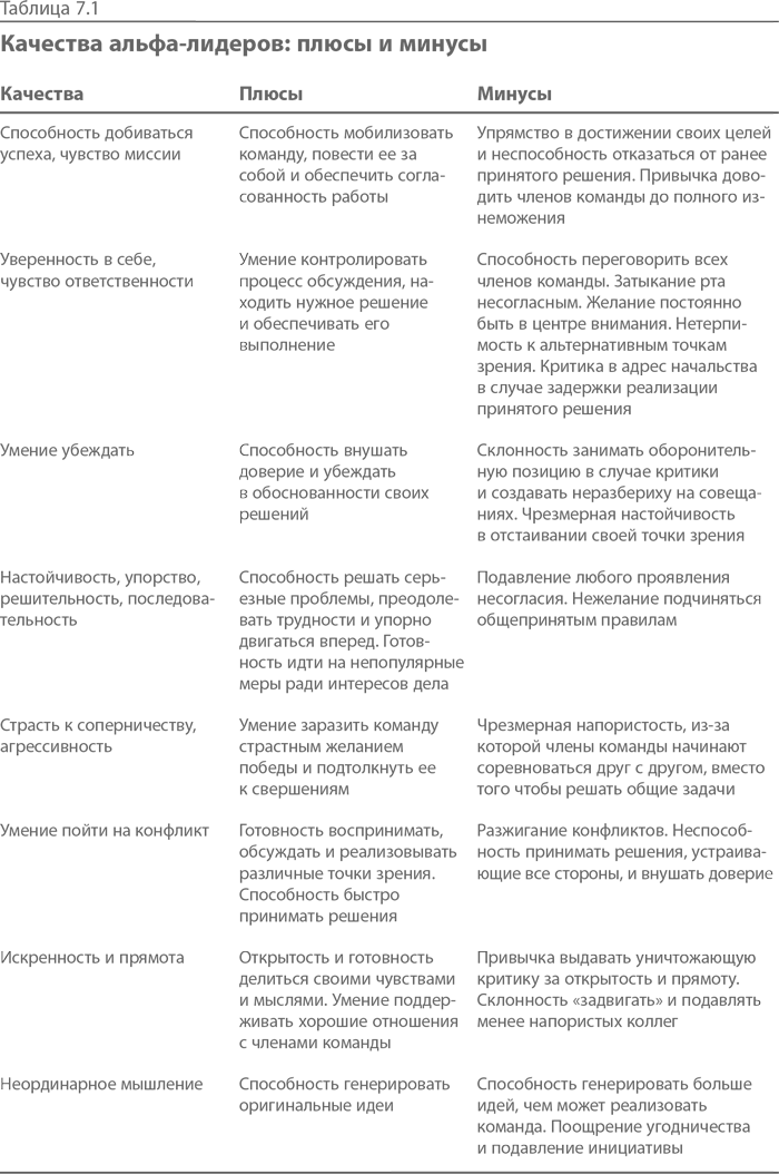 Неукротимая энергия альфа-лидеров передается команде, оживляет обсуждения и ведет к колоссальным свершениям, но их нетерпимость, самоуверенность и эгоизм вредят работе. Независимо от того, какова структура команды – вертикальная или горизонтальная (то есть существует ли формальный руководитель или все ее члены обладают равными правами и обязанностями), в ней часто возникает неформальная иерархия и тон задают наиболее активные альфа-лидеры. Используя голосовые связки и острый язык, они затыкают рот другим, не понимая, как много от этого теряют. Они уверены, что тем, кто ничего не говорит, просто нечего сказать, хотя на самом деле молчуны часто располагают ценнейшей информацией.