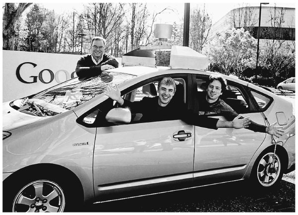 Эрик Шмидт, Ларри Пейдж, Сергей Брин и первый самоуправляемый автомобиль Google (2011). Принцип десятикратного роста в действии!
