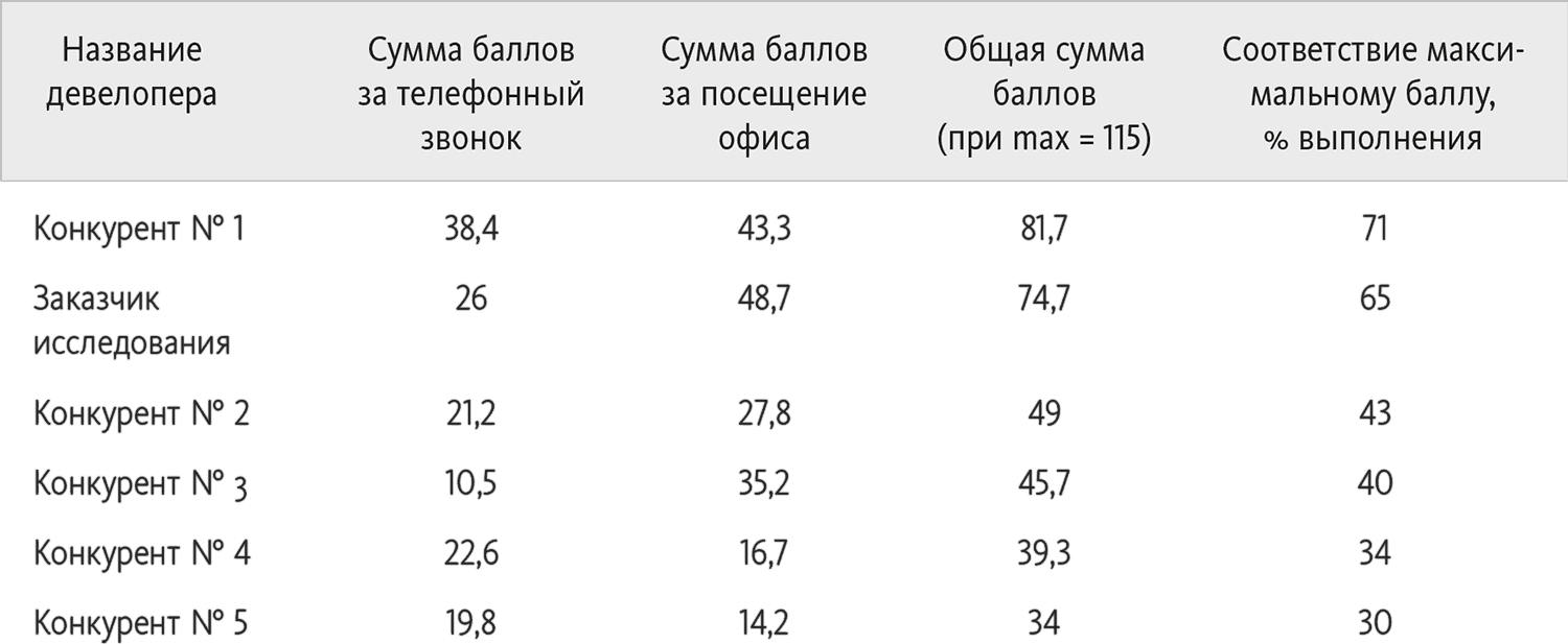 Проверяя себя, изучайте по аналогичным критериям и своих конкурентов, выработайте балльную шкалу оценок и затем сравнивайте показатели. Такой подход позволяет быть более объективными в анализе работы сотрудников вашего отдела. Вот как может выглядеть итоговая таблица по оценке работы менеджеров – и своих, и конкурентов.