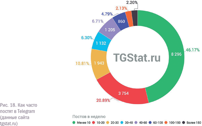 Минусы. Каждая публикация «весит» меньше, чем посты на не столь загруженных каналах. Кроме того, у вас вряд ли получится самостоятельно заниматься каналом. Ведь если вы размещаете много постов, логично, чтобы они были более-менее распределены по времени. А читать вас будут не только в Москве. Да, на апрель 2018 г. русскоязычная аудитория Telegram сосредоточена в основном в двух столицах. Но TG растет огромными темпами; возможно, через год или даже раньше регионы массово присоединятся к этой площадке. Чтобы не получалось, что все новости вы выдаете, пока человек спит, хотя бы пара редакторов вам понадобится. Даже если вы планируете делать только репосты, они должны быть круглосуточными. До того, как вы раскрутите проект и вам начнут предлагать новости, контент придется искать самим. Редакторам нужно будет подписаться на огромное количество каналов на подходящие темы (то есть практически на все каналы, которые удастся найти), читать все и фильтровать, решая, какой из множества постов вывесить следующим.