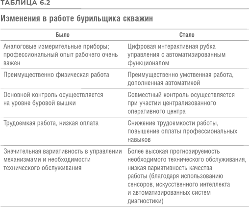 В табл. 6.2 приведены данные об эволюции работы бурильщика скважин (которую мы уже обсуждали в главе 1). Далее мы поговорим о том, как это связано с изменениями в системе оплаты труда.