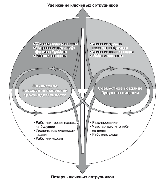 Специфичные для отдела кадров карты посвящены темам, связанным с «дополнительными инструментами для создания организационных возможностей/кадровых ресурсов». Например, одним из попаданий в цель было удержание ключевых сотрудников, поэтому центральная часть карты выглядела следующим образом (рис. 46).
