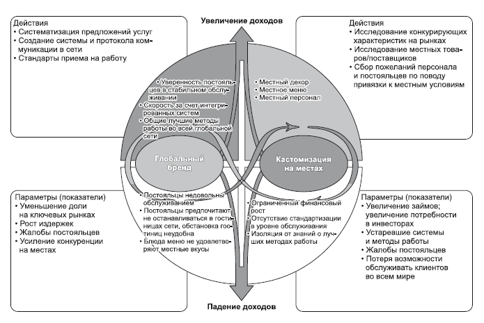 В конце концов как на корпоративном уровне, так и на уровне отдельных гостиниц Livli Hotels смогла привить персоналу концепцию глобального и локального. Эта концепция обеспечила сети гостиниц существенные отличия от других высококлассных отелей, которые были ее главными конкурентами. Одна за другой, пристально следя за показателями, гостиницы начали вносить изменения в декор, кухню и форму работников, чтобы придать заведениям местный колорит и расширить автономию их директоров с точки зрения деловых связей с местными поставщиками. Одновременно в гостиницах сети начали распространять модифицированные материалы, описывающие стандарты работы и знакомящие с наиболее эффективными методами. Была также введена более прозрачная и логичная программа выплаты компенсаций. Одним из первых наглядных примеров перемен стала гостиница в Тайбэе (Тайвань). Теперь в каждом номере на стене висела большая обрамленная фотография одного из обитателей Тайбэйского зоопарка – вместо безликих картин, украшающих стены в номерах конкурентов. Каждый гость также получал подарок в виде маленького чайника с изображением «дедушки Лин» – легендарного индийского слона, бывшего на протяжении многих лет самым популярным обитателем зоопарка и, возможно, самым знаменитым жителем Тайваня. Добавление таких на первый взгляд незначительных, но ярких мелочей повысило привлекательность гостиницы. Одним из предупредительных сигналов о возможности перевеса местного над глобальным были «возросшие расходы, не покрываемые увеличением доходов». В данной гостинице этого не происходило; фактически после начальных капиталовложений рост доходов опередил расходы.