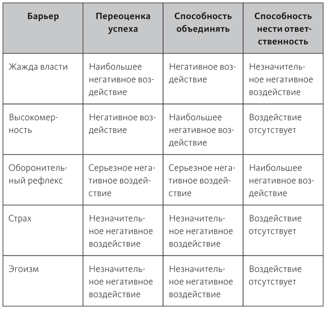 Таблица 7.3. Как пять личных барьеров блокируют коллаборативный лидерский стиль