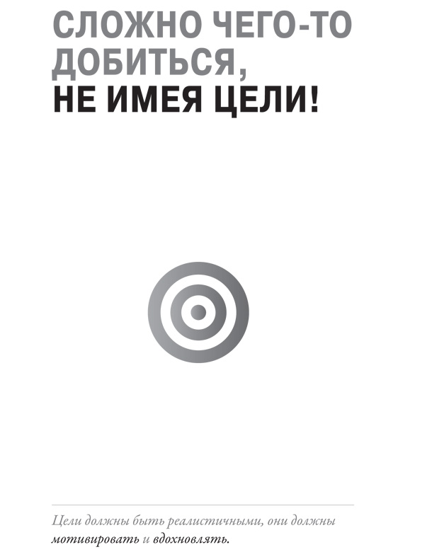 Цели нам нужны не для того, чтобы суетиться и надрываться. Ставить отдельные выполнимые задачи для нас – необходимость. Нам нужны цели, ради которых стоит страдать, в которые стоит вкладывать страсть, время и деньги. Нам нужно делать правильные вещи (результативность) вместо того, чтобы делать вещи правильно (продуктивность). Сколько людей быстро двигалось вверх по карьерной лестнице только для того, чтобы обнаружить, что эта лестница приставлена не к той стене! Правильные цели могут принести огромное удовлетворение, если они связаны с дополнительным доходом или с помощью другим. Для большинства из нас время – самый главный инструмент, но вместо того, чтобы использовать для контроля времени часы, возможно, лучше было бы взять компас. Это поможет нам ответить на правильный вопрос: где мы хотим оказаться/работать завтра? Самый медленный человек, который концентрируется на своих целях, всегда будет быстрее, чем тот, кто бегает кругами без цели.