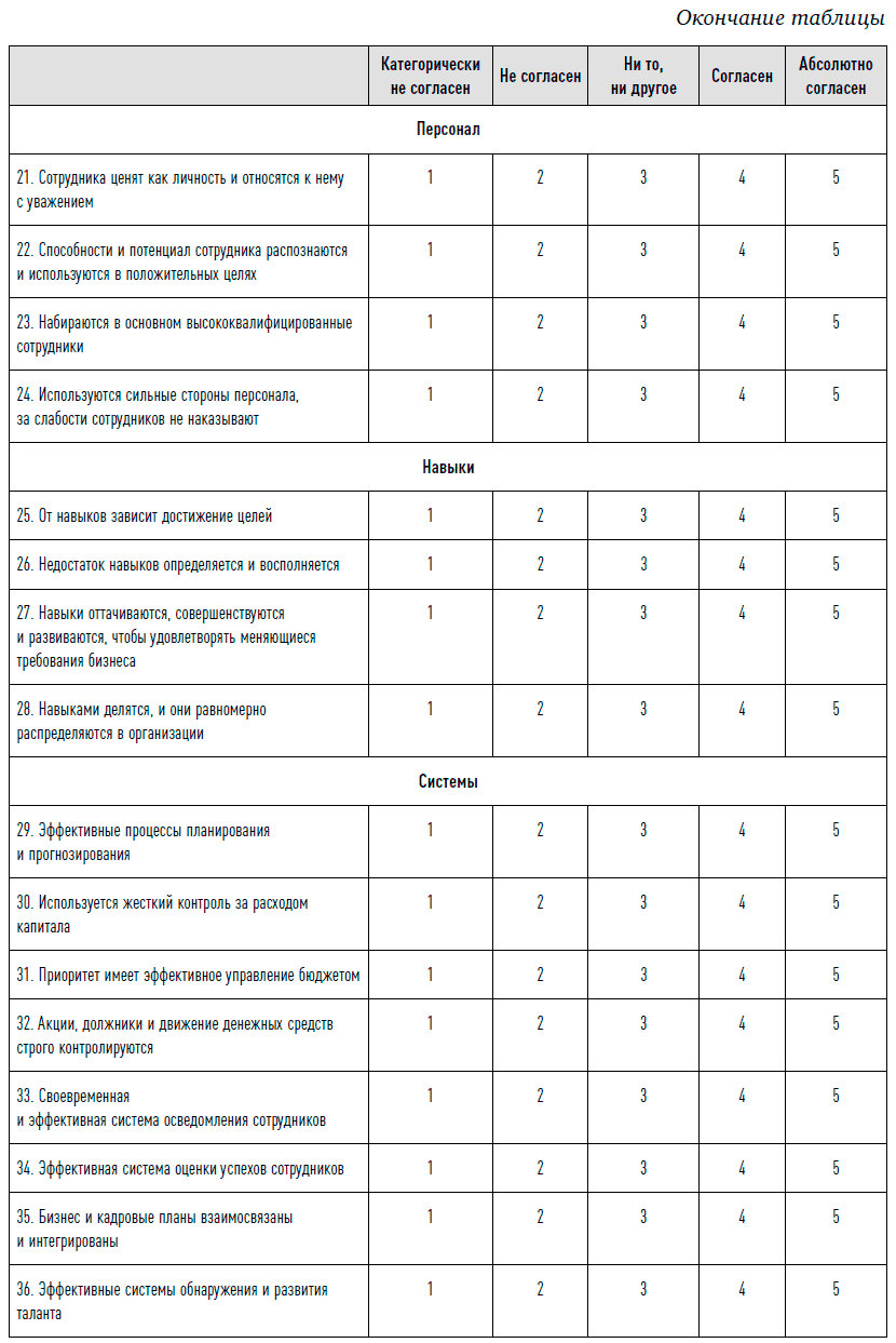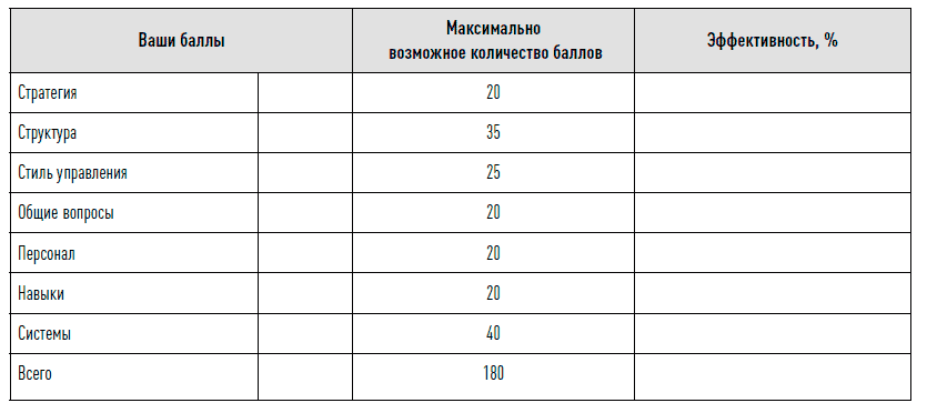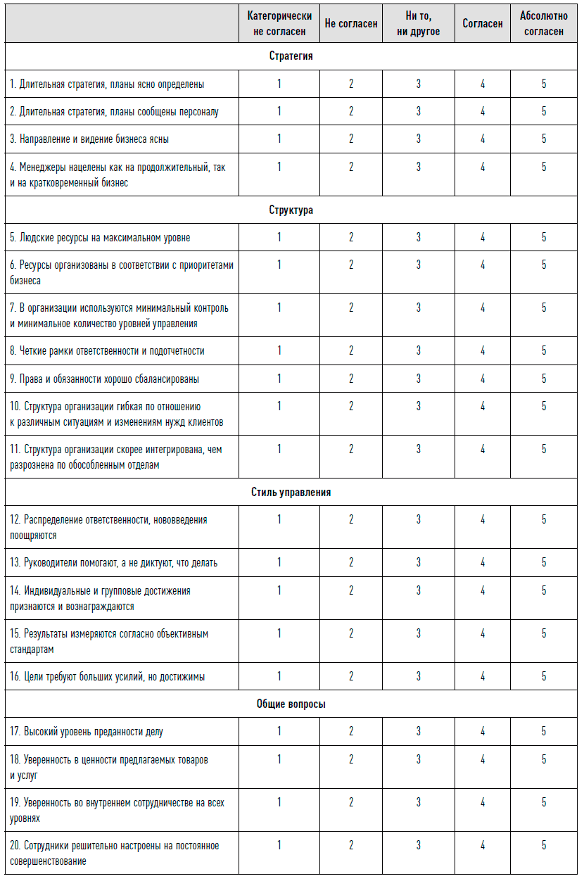 Приведенная ниже анкета может быть использована для изучения эффективности любого организационного элемента. Вам необходимо обдумать каждое утверждение и решить, насколько оно верно применительно к вашей организации.
