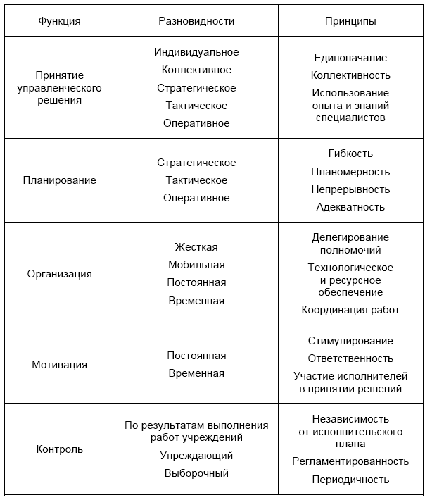 Рис. 4.12. Основные функции управления