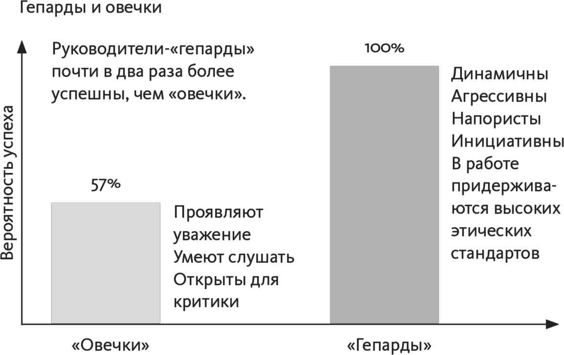 Качества, по которым руководителя можно определить как овечку или гепарда, – статистически достоверные предсказания их будущей успешности. Стив Каплан со своей командой представил результаты анализа в университете Чикаго, Гарварде, Вартоне и Келлоге. Мы знаем, что эти результаты верны на рынке частных инвестиций, и готовы распространить исследования на другие области рынка. А тем временем вы могли бы прикинуть, что означают для вас эти факты.