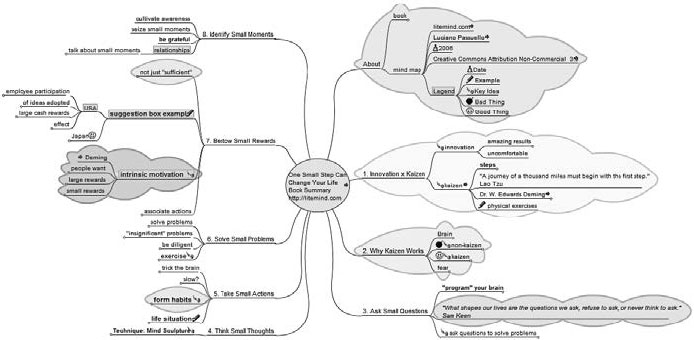 Дэн Вудс в статье «Сила майнд-мэппинга», опубликованной в журнале Forbes, приводит пример интеллект-карты книги Роберта Морера «Один маленький шаг, который изменит всю вашу жизнь» (рис. 8.4).