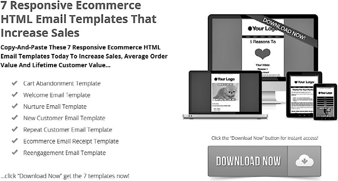 Рис. 8.12. Компания по автоматизации email-рассылок для интернет-магазинов предлагает бесплатно скачать семь шаблонов электронных писем