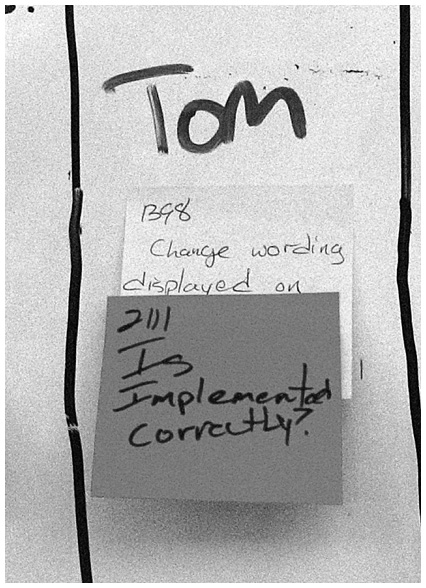 Когда сотрудник, занимающийся пользовательским запросом, не может продолжить работу, он должен отметить задачу как заблокированную, прикрепить к ней розовую карточку с перечнем причин блокировки и создать «проблему» в электронной системе управления задачами. «Проблема» должна быть связана с исходной задачей (рис. 20.1). Вот некоторые примеры: двусмысленность требований (причем эксперт, который мог бы немедленно устранить двусмысленность, недоступен); требуется создание среды, а инженер, который может этим заняться, недоступен; для работы с задачей нужен узкий специалист, но он болен, находится в отпуске или отсутствует в офисе по иным причинам.