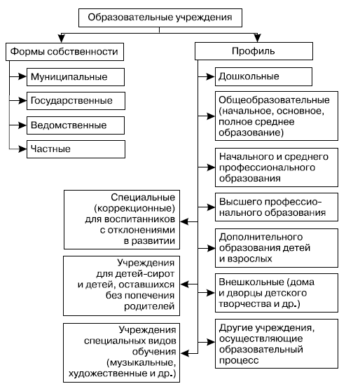 На территории муниципального образования может располагаться большое количество образовательных учреждений различного профиля и форм собственности (рис. 5.4). Органы муниципального управления городским образованием взаимодействуют с немуниципальными образовательными учреждениями в целях представления и защиты интересов жителей города, обучающихся в этих учреждениях.