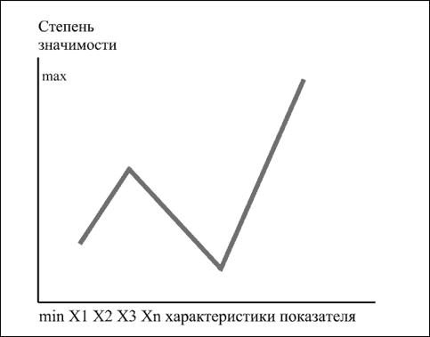 Например, в стратегии профессионализма показатель профессиональных знаний (умений, навыков) и личных качеств руководителя представлен графиком, где указывается зависимость между характеристиками показателя (Х1, Х2… Хn) и степенью значимости этих характеристик для данной стратегии (от минимальной до максимальной).