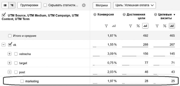 После чего подставим эту ссылку в рекламный пост, и в «Яндекс.Метрике» (или Google Analytics) будет точно видно, сколько по ней было переходов и продаж.