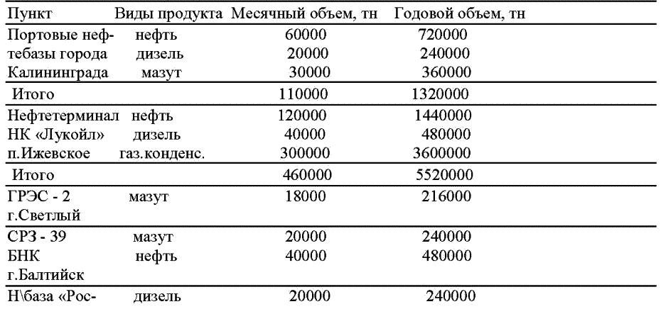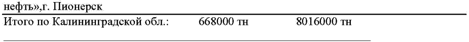 В настоящее время в Калининградском регионе действуют следующие пункты перевалки нефти и нефтепродуктов (в тоннах)