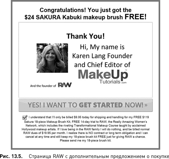 После того, как клиент выразил готовность совершить покупку, компания предлагает получить весь набор бесплатно, но при этом стать членом RAW с оплатой ежемесячного взноса в размере $19,95 (рис. 13.5).