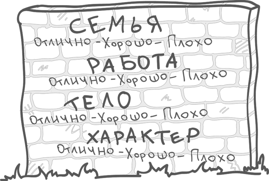 Прежде чем подробнее рассмотреть сферы вашей жизни, попрошу дать общую оценку каждой. Не подбирайте слова. Пишите как есть. Если все плохо, так и пишите – «все плохо». Будьте честны. Ведь кроме вас самих это не нужно никому.