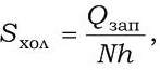При определении грузовой площади холодильника учитывают показатель запасов скоропортящихся продуктов, выраженный в кубических метрах, фактических и условных тоннах хранения. Ее можно рассчитать по формуле: