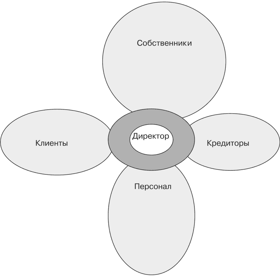 Возьмем для простоты модель, в которой у директора всего четыре типа клиентов: собственники, клиенты, персонал, кредиторы. Собственники, как это ни удивительно, хотят дивидендов, например, в размере 80 неких единиц. Персонал хочет повышения зарплаты и соцпакета, на это нужно не менее 60 единиц.