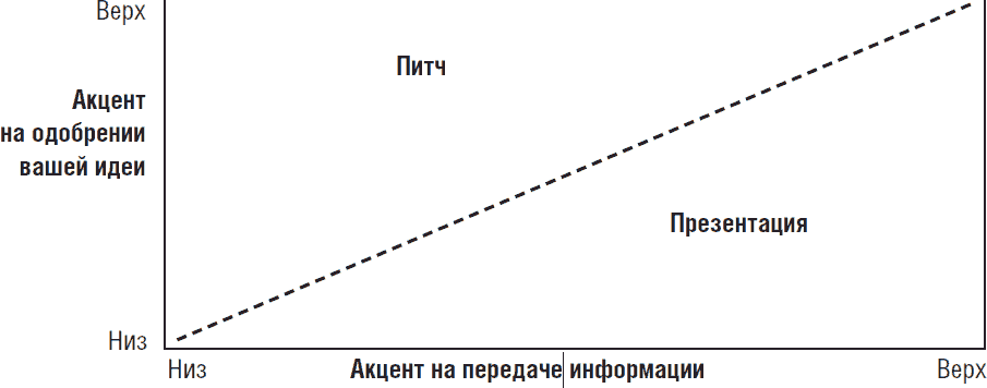 На протяжении всей книги я буду использовать эти слова как почти полные синонимы, но разница все же есть. В ситуации питча вы стремитесь изменить чье-то отношение или даже реакцию, обычно надеясь на громкое одобрительное «да» касательно своей идеи или предложения. На презентации вы прежде всего делитесь знаниями и информацией, хотя и тогда прощупываете почву для дальнейшего расширения своей «сферы влияния».