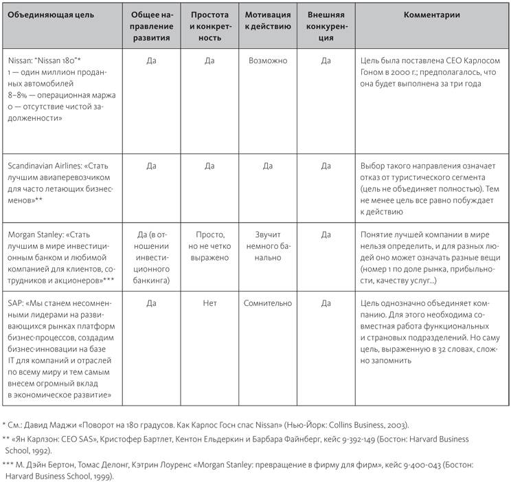 Усердное стремление привело ученых к тому, что они отказались от собственных идей и выбрали подход, позволявший достичь цели в установленные сроки. 24 июля 1969 г., спустя восемь лет и два месяца после речи Кеннеди, Нил Армстронг со своей командой побывали на Луне, и их отсек успешно приводнился в Тихом океане. Задание было выполнено. Почему цель Кеннеди была настолько блестящей? Потому что она отвечала четырем критериям постановки объединяющей цели (в табл. 4.1 представлены примеры объединяющих целей)[147].
