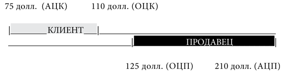 Проверка показывает, что большинство магазинов предлагают данный тип покрышек по цене 225 долларов за штуку, но Томасу удается найти одного продавца, у которого они стоят 210 долларов. Он полагает, что это и есть аспирационная цена продавца (АЦП). Но точно так же, как дилер не знает отправной цены Томаса, так и Томас не знает отправной цены дилера.