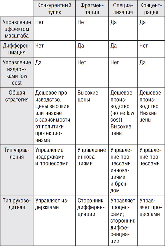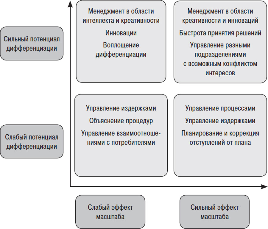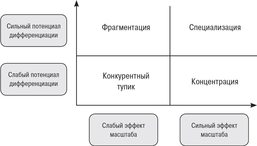 Типовая классификация компаний осуществляется по двум параметрам: эффекту масштаба и потенциалу дифференциации.