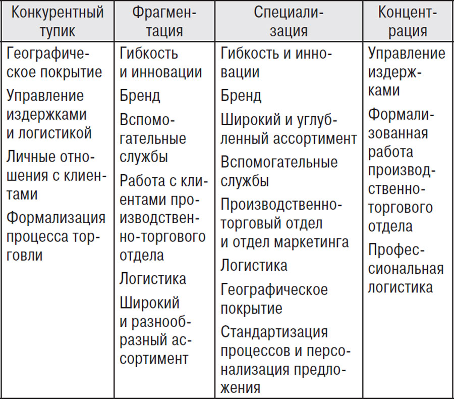 Табл. 17.2. Таблица общих ключевых факторов успеха