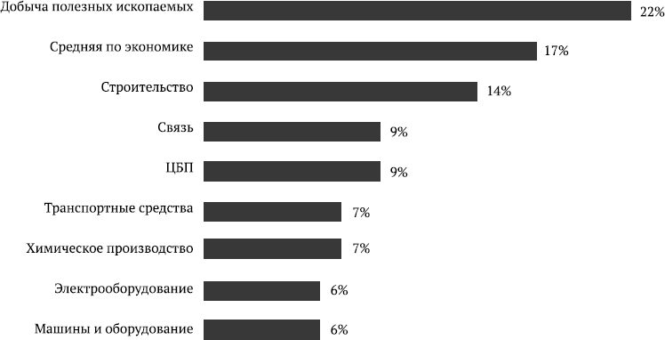 Рис. 2.3. Доля высокотехнологичных отраслей промышленности в добавленной стоимости [56]