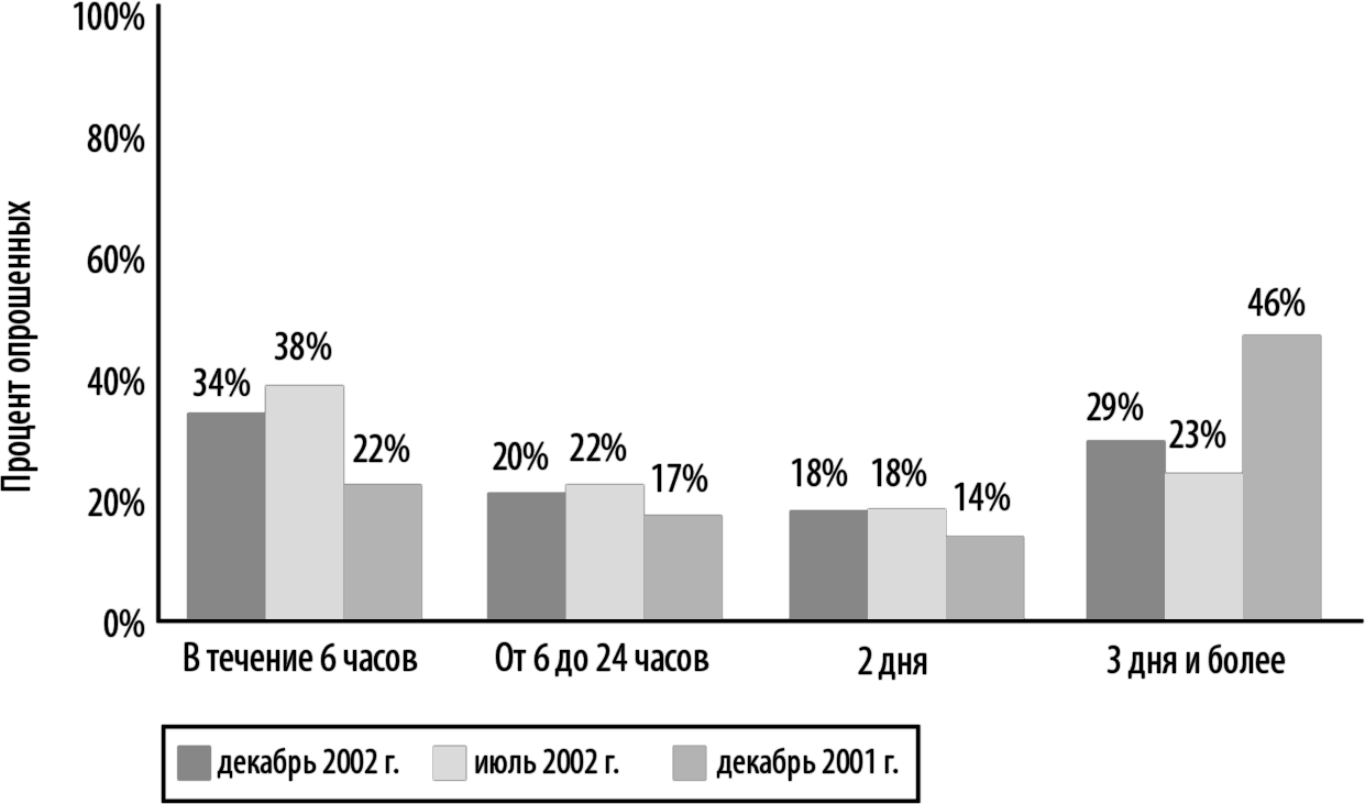 Рис. 10.1. Время ответа на электронные письма клиентов (по данным Jupiter Research)