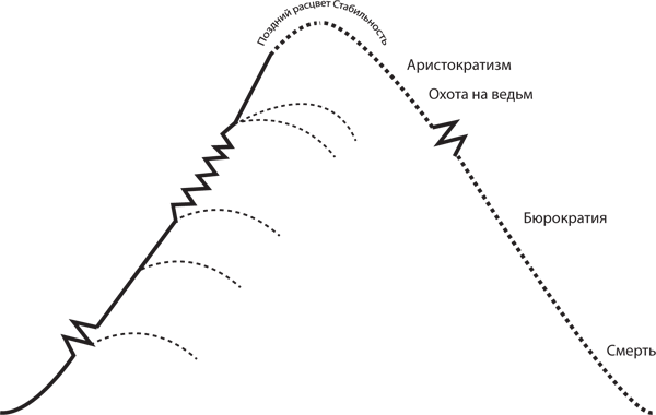 Организационная смерть определяется как отсутствие ресурсов для вознаграждения работников организации за их труд. Организация мертва тогда, когда никто из ее членов не хочет появляться на работе: для этого уже нет никаких причин. Смерть наступает в тот момент, когда ни у кого не остается приверженности организации (рис. 9.3). При отсутствии жизнеспособной политической преданности, направленной на поддержку чахнущей отрасли или компании, смерть может произойти еще до начала Бюрократизации. Когда существование бюрократии обусловлено политическими интересами, то ее смерть может быть отложена на бесконечно долгий срок. Жизнь бюрократии давно бы прекратилась, если бы она зависела от воли рассерженных клиентов.